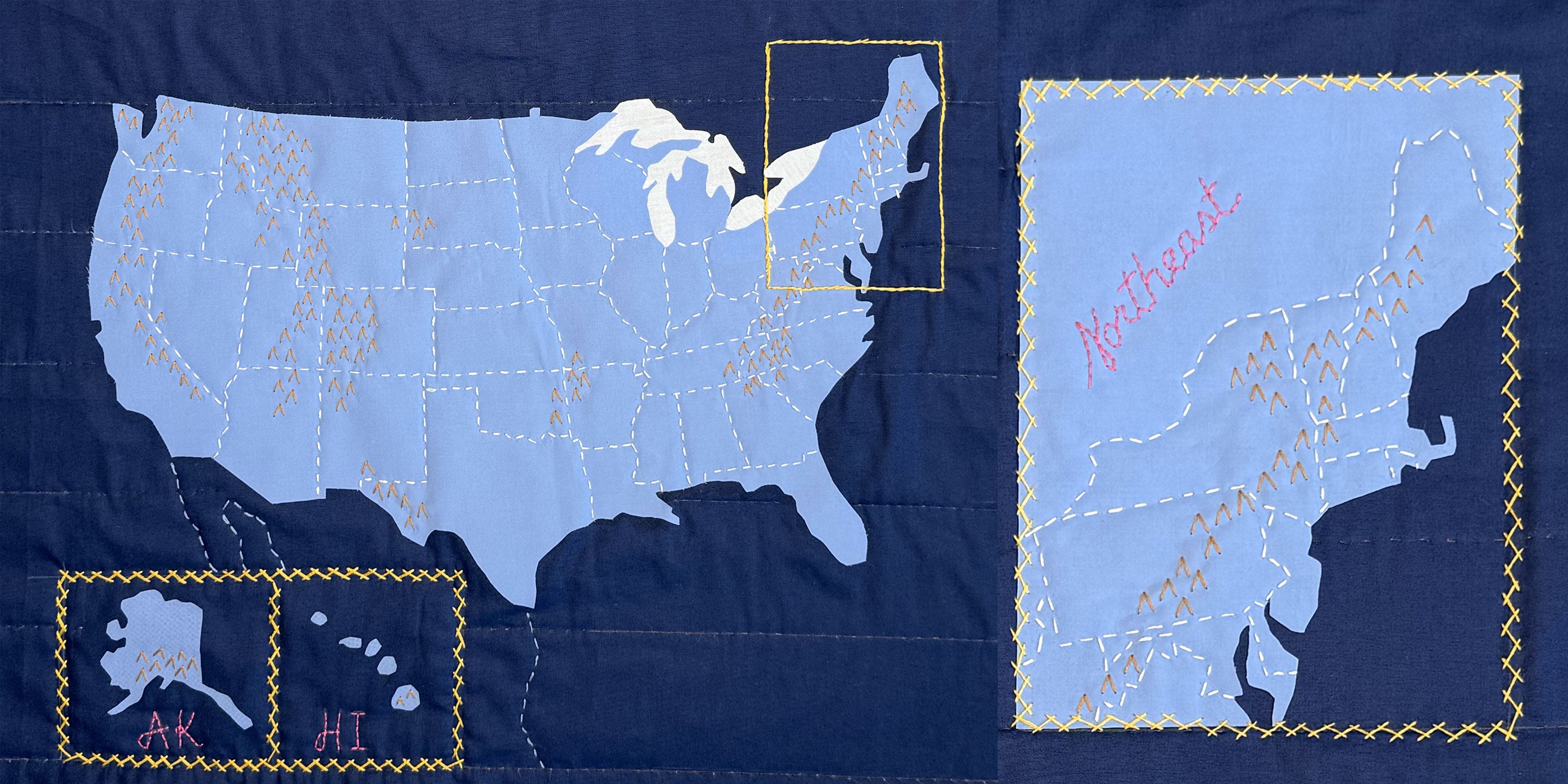 Map your adventures with an heirloom-quality landscape quilt. Available projects include Yellowstone, Yosemite, Acadia and Joshua Tree.